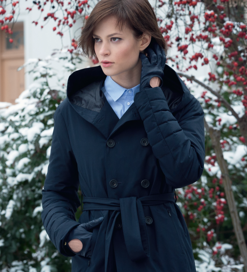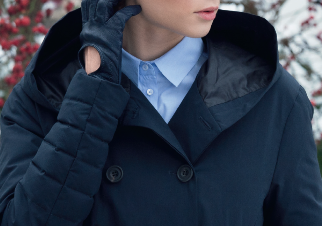A double-breasted jacket with a vanguard hood is a tasteful mixture of classics and modernity, with a little touch of nonchalance and an emphasis placed on comfort.